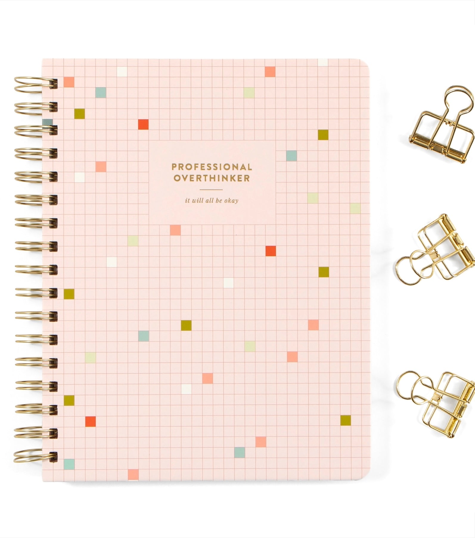 Stay organized and inspired with the Professional Overthinker Spiral Notebook! Featuring lined pages for all your thoughts, lists, and brainstorms, this 7” x 9” wire-bound notebook is perfect for journaling, note-taking, or planning your next big idea. The playful cover design makes it a great desk companion or a fun gift for students, writers, teachers, or anyone who loves to jot things down. Whether you’re tackling to-do lists or letting your creativity flow, this stylish and functional notebook is here to keep up with your brilliant (and overthought) ideas!